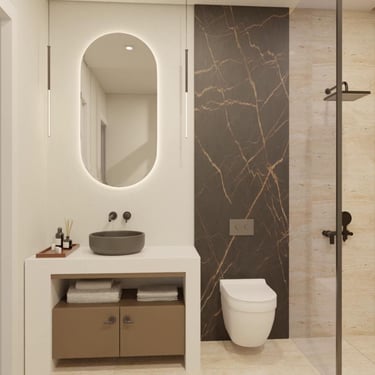 Współczesne łazienki z wykończeniami ceramicznymi, podwieszanymi umywalkami i wbudowanymi brodzikami Zenon Smart